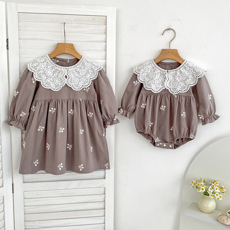0-6Yrs New Sisters Clothes Girl Party Dress Cotton Flower Kids Princess Embroidery Dresses Baby Girl Romper Children Clothes