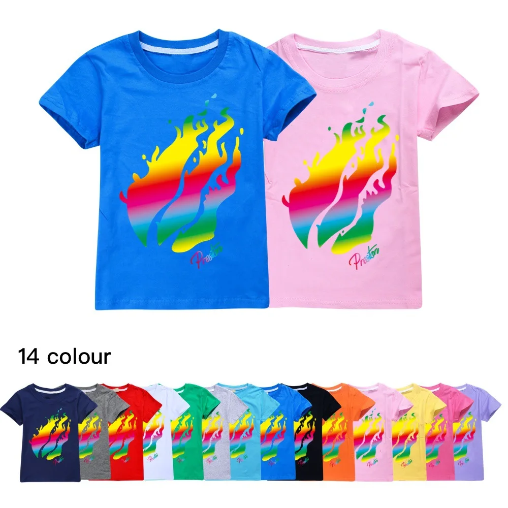 Child Summer Clothes Birthday Girl T-Shirt Cotton Toddler Prestonplayz Shirts Big Boys Tops School Kids Fashion Short Sleeve 462
