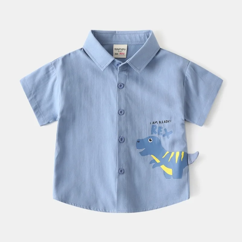 Summer Baby Clothes Toddler Boys Shirts with Collar Kids 2 to 3 4 5 6 7 Years Short Sleeve Cute Cotton Dinosaur Children's Tops