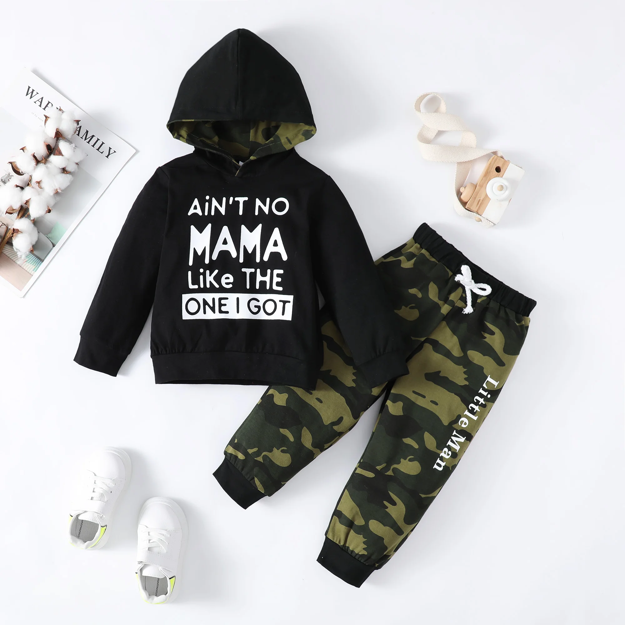 1-6Years Kids Toddler Boy Clothes Set Black Long Sleeved Hoodie+Camouflage Pants Children Baby Fashion Spring Outfit Suit