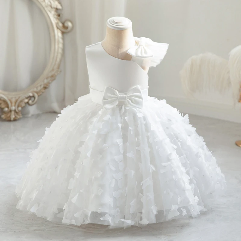 Bow Baby Girls White Baptism Dress Butterfly Tulle Infant Baby 1st Birthday Wedding Gown Flower Girl Tutu Princess Party Dresses  Read more