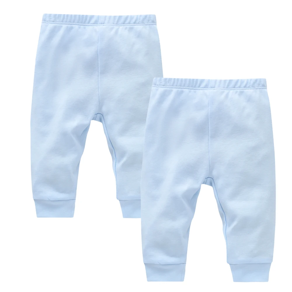2 Pcs/lot Newborn Baby Boys Girls Long Pants 0-12 Months Solid Blue Design 100% Cotton Infant Trousers