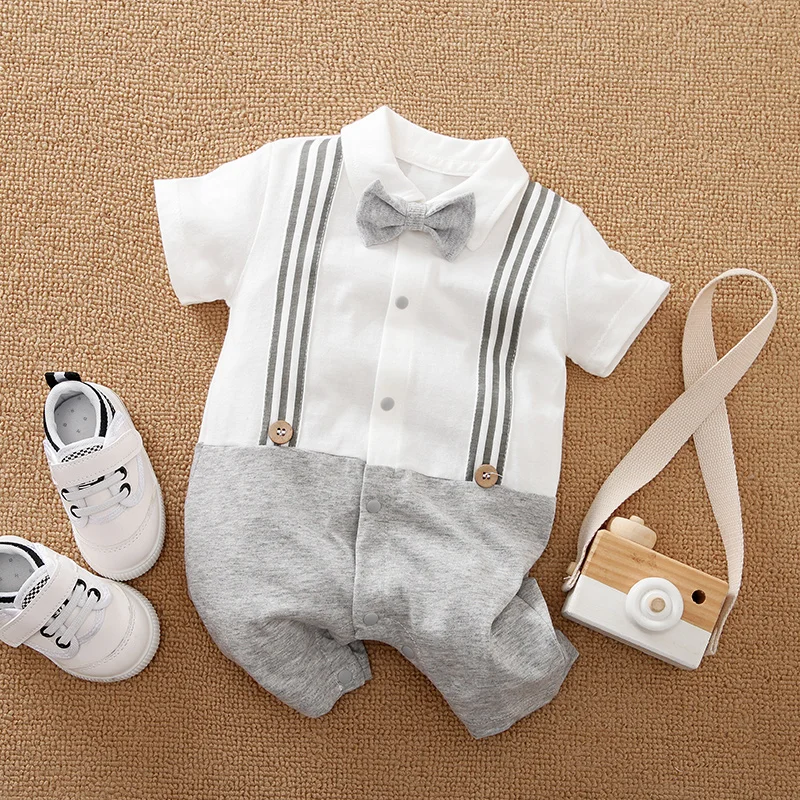 Newborn Clothing Handsome Gentleman Backband Cotton Comfortable And Soft Boys And Girls Summer 0-18 Short Sleeve Baby Bodysuit  Read more
