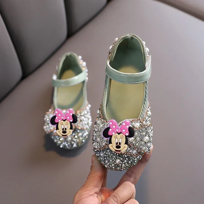 Spring and Autumn New Casual Shoes Diamond Bow Disney Mickey and Minnie Girls' Shoes Children's Dance Shoes Performance Shoes