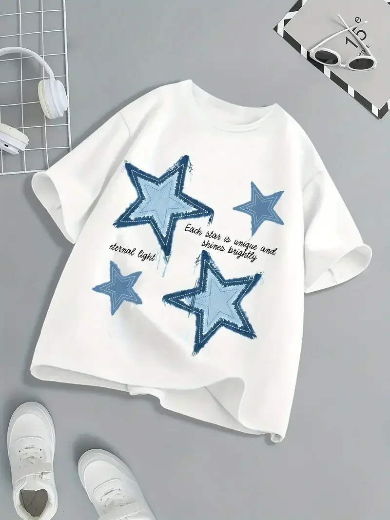 "Star" Print T Shirt Children's Kids Crew Neck Comfortable Short Sleeve Tshirt Summer Cute Pullover Girls Boy T-Shirt