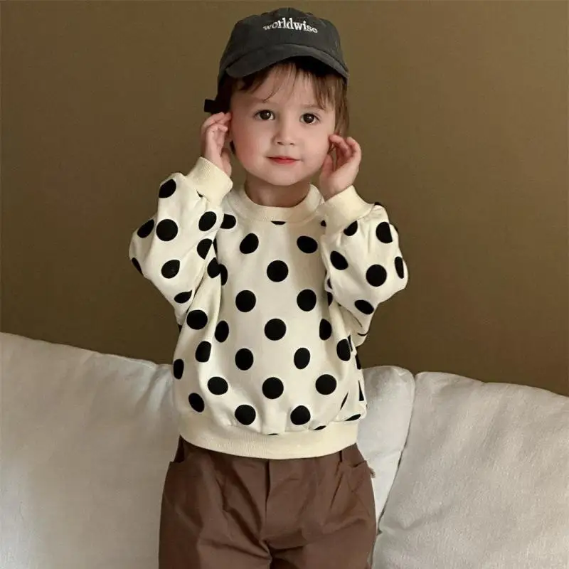 2025 Spring New Baby Long Sleeve Polka Dot Sweatshirt Cotton Infant Girl Versatile Pullover Toddler Boys Casual Loose Tops