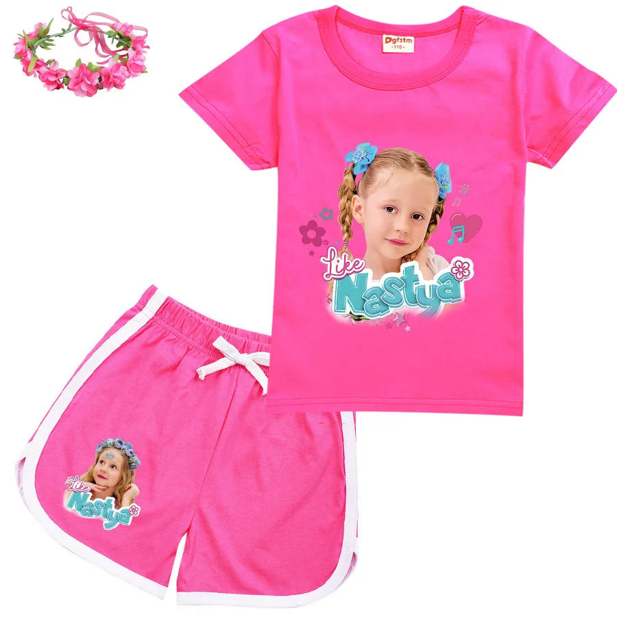 Lovely Like Nastya Show TShirt Kids Summer Short Sleeve T-shirt Shorts 2pcs Sets Toddler Girls Outfits Children Casual Sportsuit