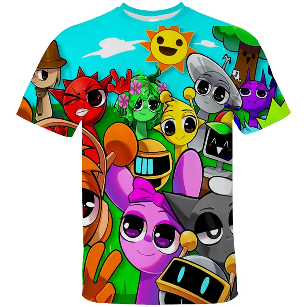 Girls Boys Sprunki Clothes Kids O-neck Short Sleeve Tees Toddler Cute Cartoon T-shirt Children's 3D Print Summer Casual T Shir