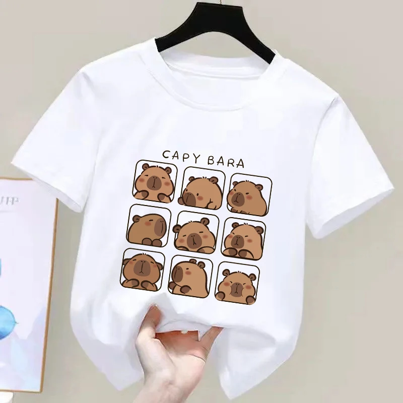 Capybara Kids Clothing Tees Summer Printed Cartoon Fashion 100%cotton Short Sleeve T-shirt Girls Casual Tops T Shirts Crewneck