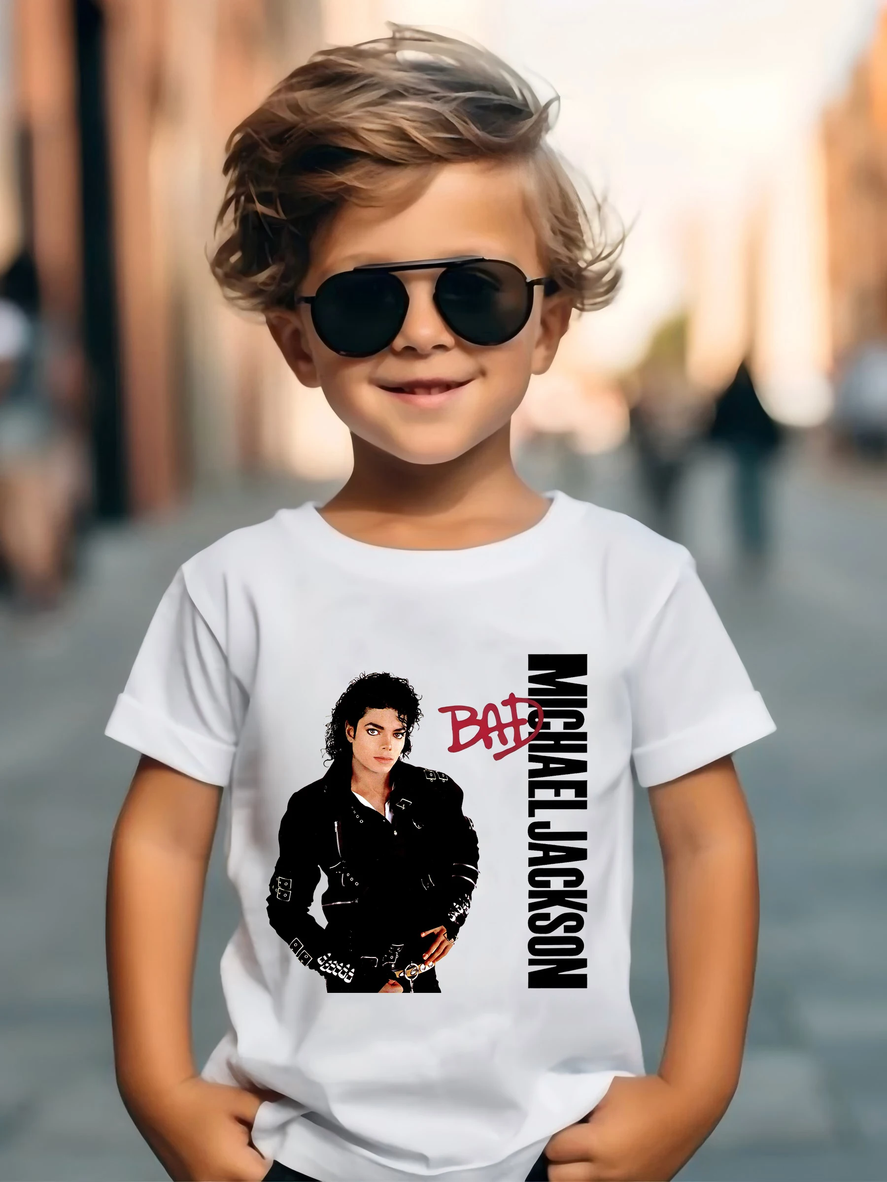 Children Fashion Michael Jackson Rock N Roll Cool T Shirt Kids Summer Tops Baby Boys/Girls Casual Clothes Children Crew Neck Top