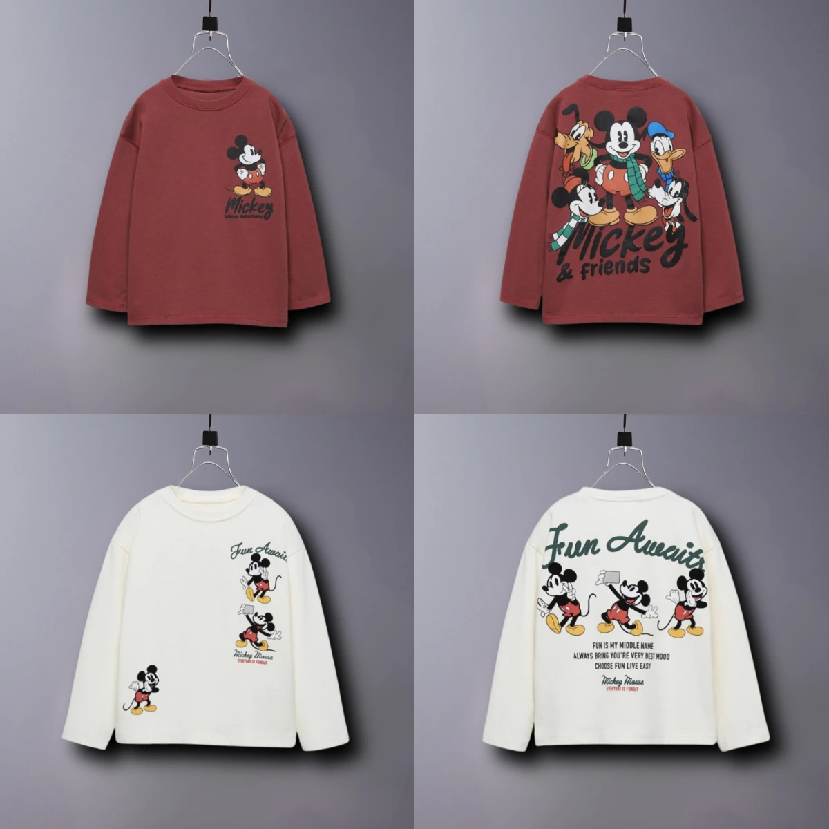 Mickey Mouse Pattern Boys Tops Long Sleeved Tees Spring Fall Kids Clothing Loose Casual Children Cartoon Base Shirt Pullovers