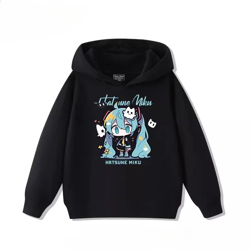 Children's Teenagers Hatsune Miku Creative Pattern Pullover Clothes Fall and Winter Outdoor Warm Cute Girls Hooded Sweatshirt
