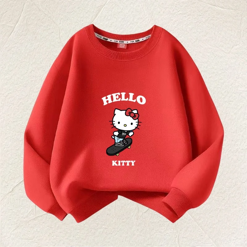 Summer Baby Girls Clothes Kid Sanrio Hello Kitty Printed Long Sleeve Sweatshirt Children Cartoon O-Neck Soft Cotton Pullover Top