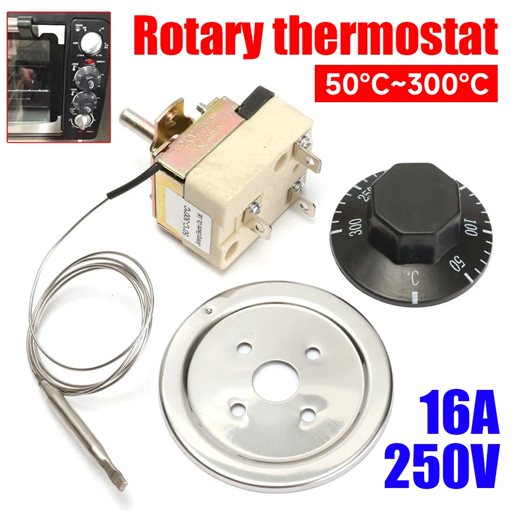 Rotary Temperature Controller Thermostat AC 250V 16A Dial 50 to 300 Degrees Celsius Temperature Control Switch For Electric Oven