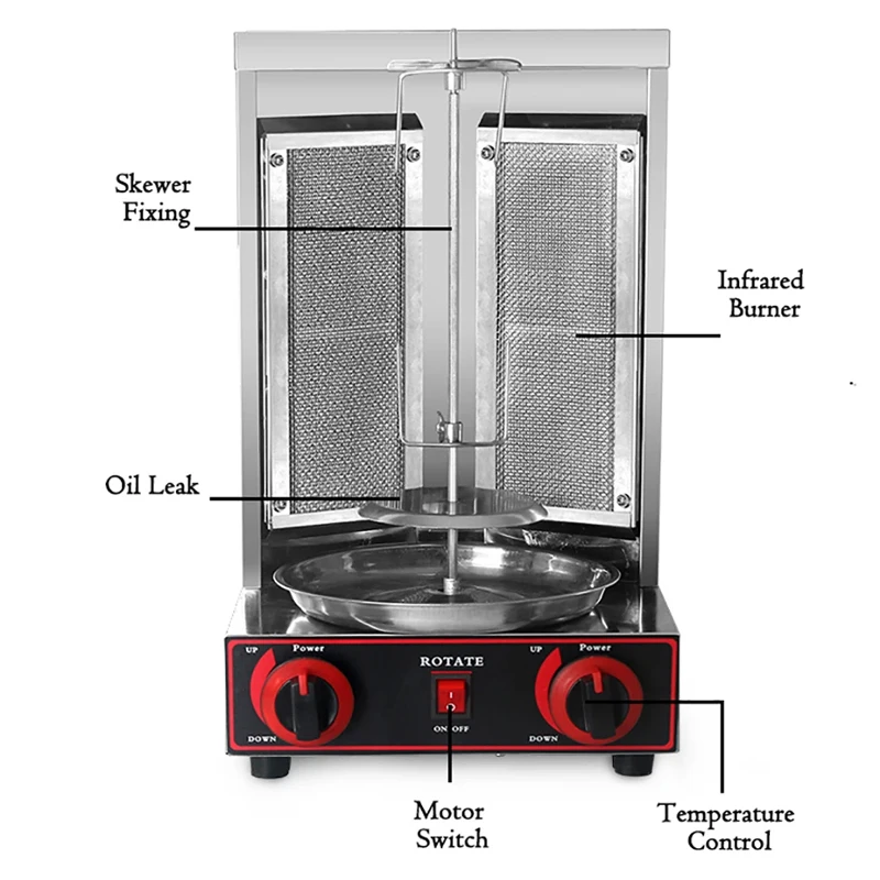 Vertical Electric BBQ Kebab Grill Machine Gas Shawarma Grill Automatic Rotation Roast Lamb Skewers Machine