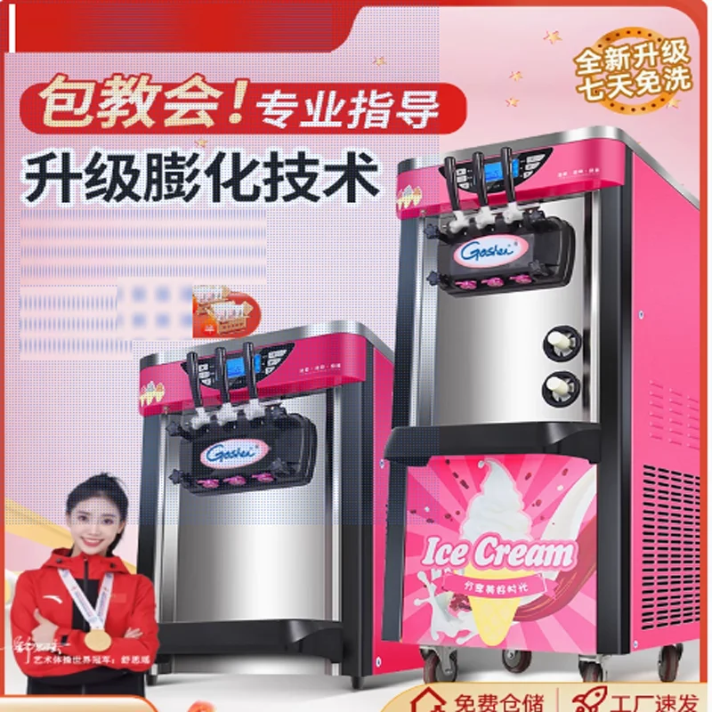 Ice Cream Maker Machine 3 Flavors Soft Ice Cream Machine Blue Pink Stainless Steel Ice Cream Machine