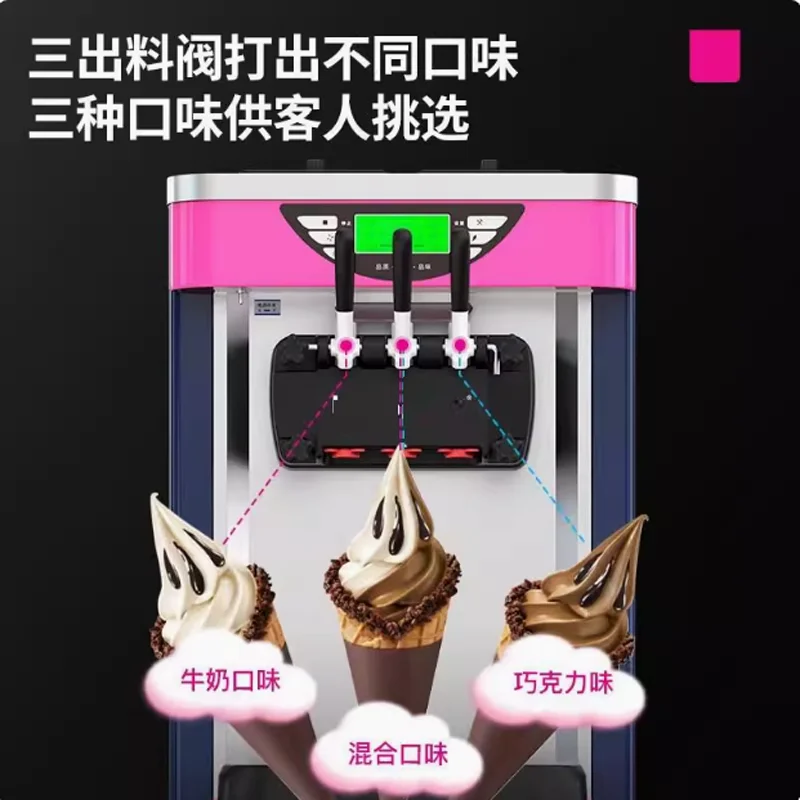 Commercial Ice Cream Freezer Machine 3-flavor Yogurt Maker One-click Clean 18L/H LCD Display New Soft Ice Cream Machine