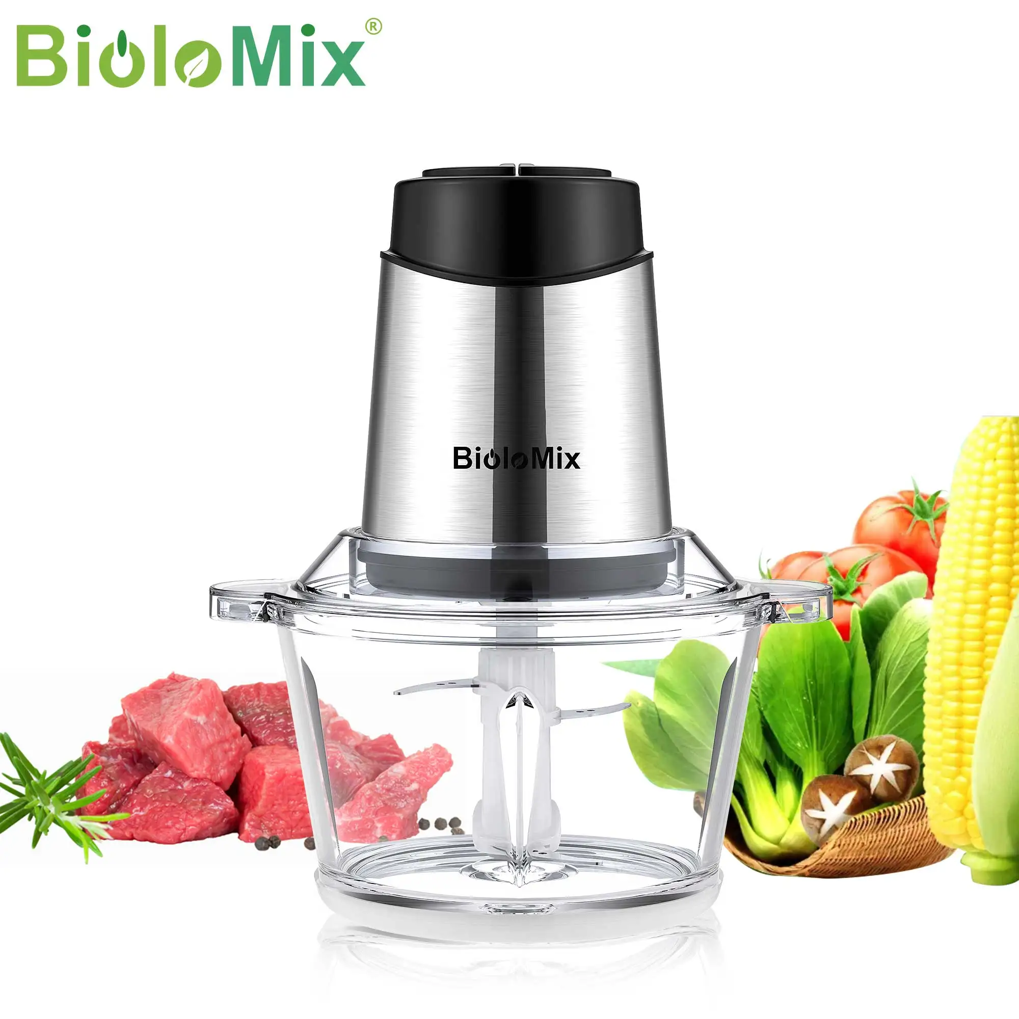 BioloMix 1.8L Glass Bowl Food Processor Chopper Two Speeds Meat Grinder For Baby food Vegetables Onion Garlic