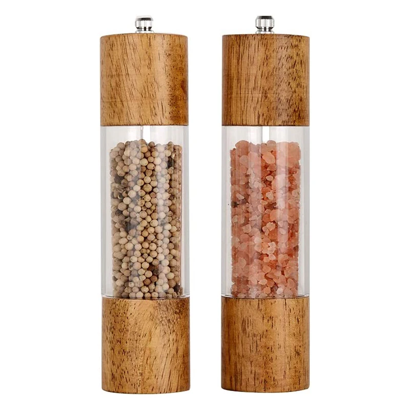 LMETJMA Premium Acrylic Salt and Pepper Grinder Set Manual Salt and Pepper Mills Wooden Shakers with Adjustable Ceramic Core 137