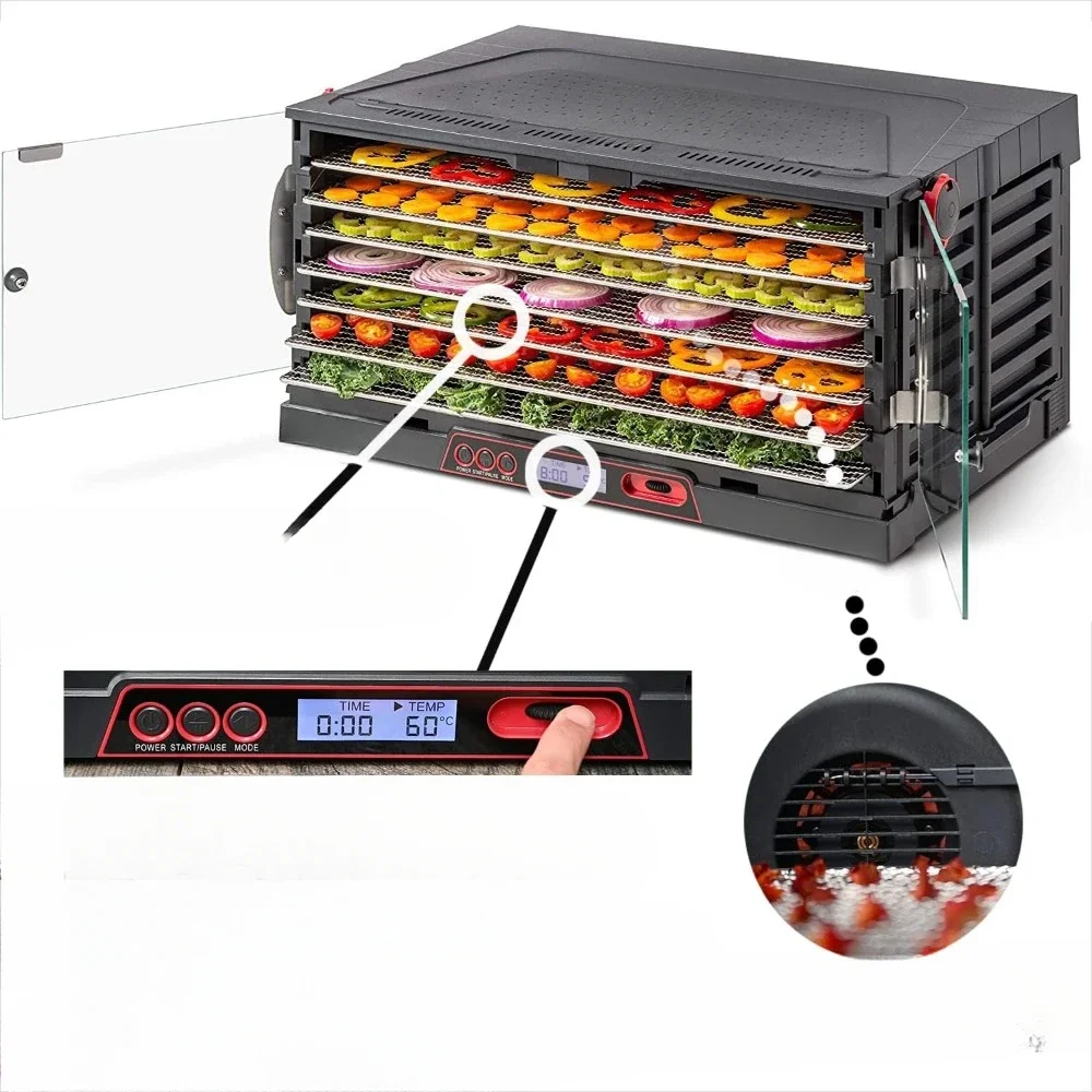 Dehydrator for Jerky, Fruit, Meat, Beef, Herbs, 6/8/12/18-Tray Full Stainless Steel Dehydrator Machine, LED Display,