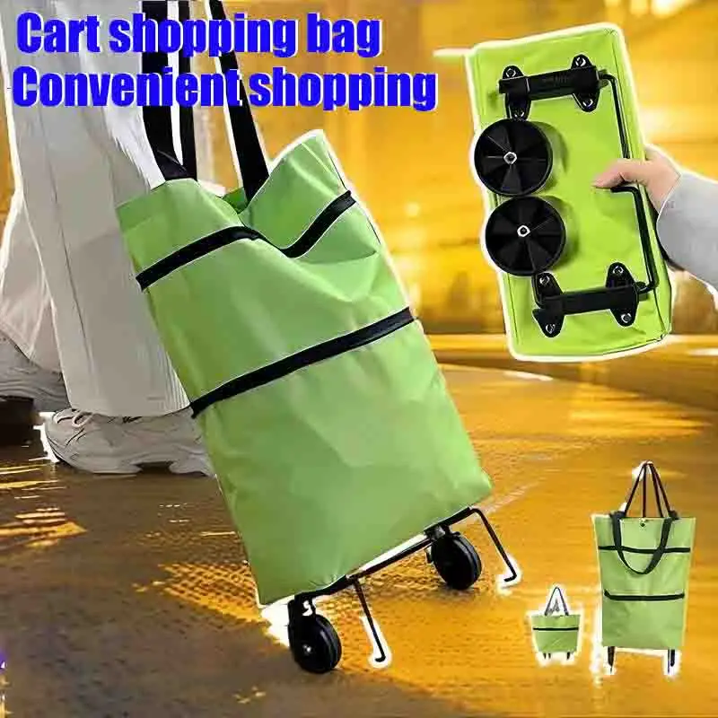 1-2PCS Portable Grocery Cart Foldable Shopping Cart Lightweight Cart With Wheels Household High-Capacity Delivery Shopping Bag