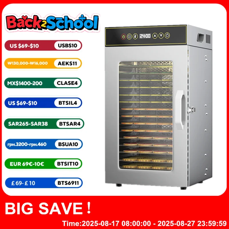 Premium 18-Tier Stainless Steel Food Dehydrator Commercial & Home Use, Adjustable Energy-Efficient Drying for Fruits/Meat/Herbs
