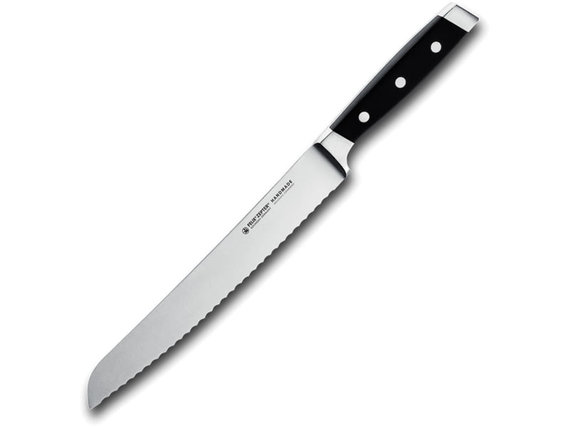 FELIX 8.5in Bread 8.50 in Kitchen Knife 817122. Black plastic handle. Stainless bolster(s). Stainless pommel. Specifications for FELIX 8.5in Bread 8.50 in Stainless Steel Kitchen Knife: Manufacturer: FELIX Blade Length: 8.5 in Overall Length: 13.75...  Read more