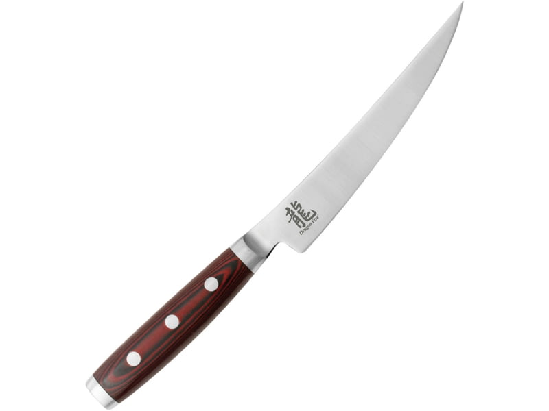 Dragon by Apogee Fillet Knife 6in Fixed Blade Knife 10.5in Overall 6in Satin Cts-Bd1 SS Blade SS Bolster Fda Approved Red Resin And Linen Canvas. 5" overall. 6" satin finish CTS-BD1 stainless blade. Stainless bolster(s). FDA approved red resin and...  Read more