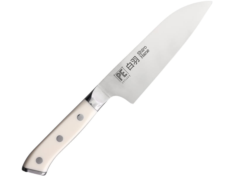Dragon by Apogee Shiro Hane Santoku 6in Knife 11.5in Overall 6in Satin CTS-BD1 Stainless Steel Blade White Corian Handle SHIR-SANT-0600