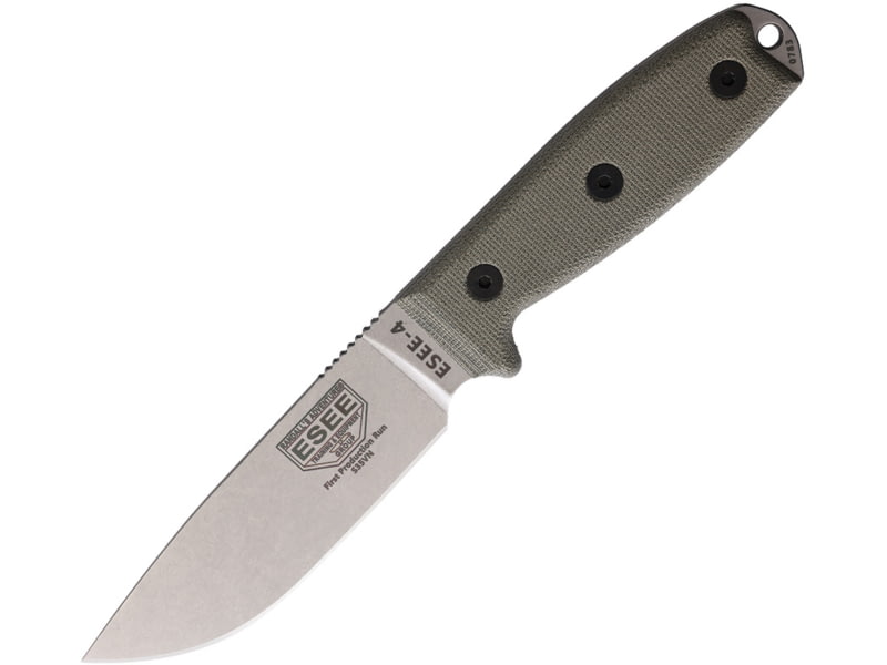 Esee Model 4 S35VN Micarta Knife 4.5" stonewash finish S35VN stainless drop point b Green linen micarta handle ESEE-4PS35V