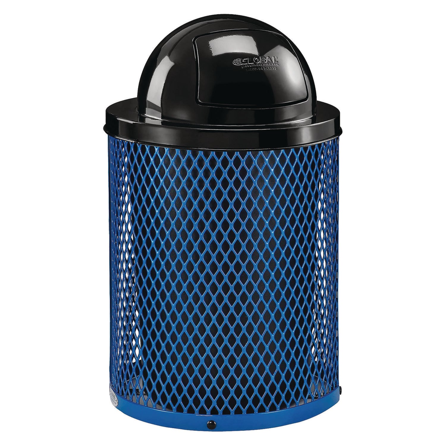 Global Industrial Outdoor Diamond Steel Trash Can, Rain Bonnet Lid, 36 gal, Blue (GBE261926BL)