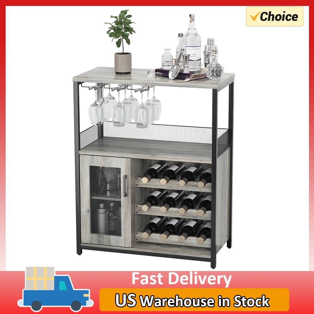 Wine Cabinet with Large Storage Space Detachable Rack Industrial Sideboard and Buffet Cabinet with Glass Holder and Mesh Door