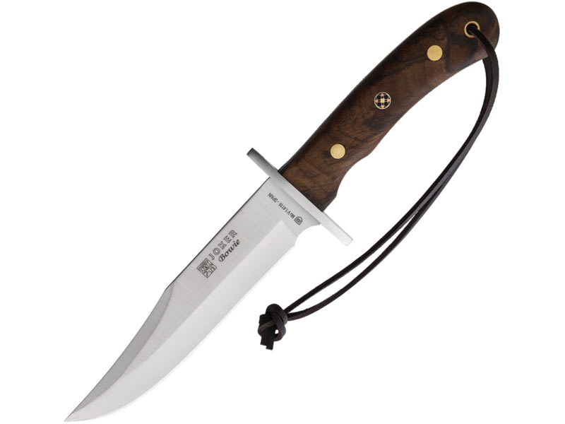 Joker Knives Joker s Bowie Walnut 6.25 in Fixed Blade Knife CN96. 4116 stainless bowie blade. Walnut handle. Stainless guard. Full tang. Lanyard hole. Brown leather belt sheath. Specifications for Joker Knives Joker s Bowie Walnut 6.25 in Stainless...  Read more