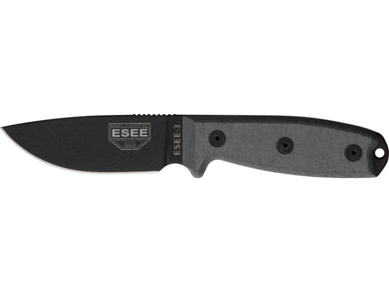Esee Mdl 3 Stnd Edge Fxd Knife 3.75in Black Textured Powder Coated Carbon Steel Black Linen Micarta Hdl RC3PM. 38 inches of 1095 carbon steel. The Esee 3 Knife w/Paracord is a super lightweight durable knife that is sure to help you get the job done...  Read more