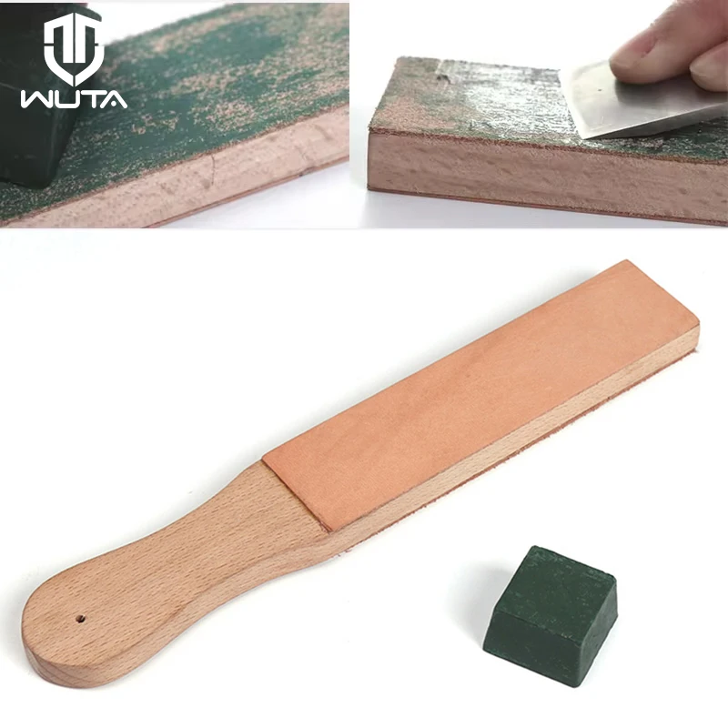 WUTA 1 Piece Leather Knife Sharpener Sharpening Strop Tool Black Wood Razor Polishing Board Fine Grinding with Polish Compound