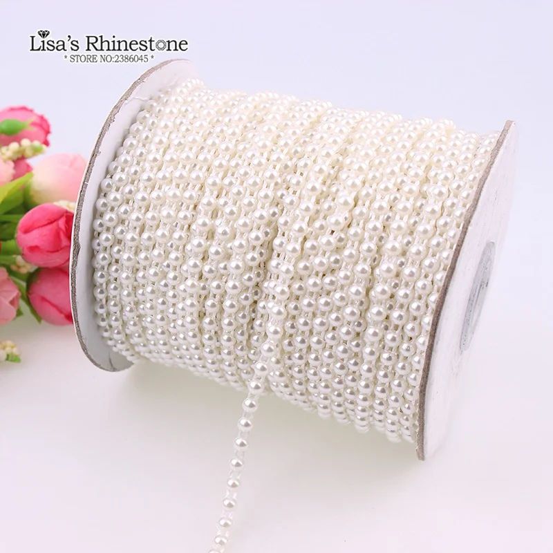 4mm DIY Garment Accessories 50 Meters/lot Half Round Flat Back Plastic Pearl Trim Flatback Pearl Bead Chain VX12  Read more