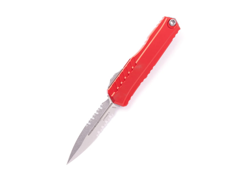 Microtech Cypher II D/E Stonewash Part Serrate Automatic Folding Knife 3.55in M390MK Steel Red 1242-11RD. 55in Automatic Folding Knife in your pack and all set to go. A suitable well made auto folding knife responds with the push of a button or the...  Read more