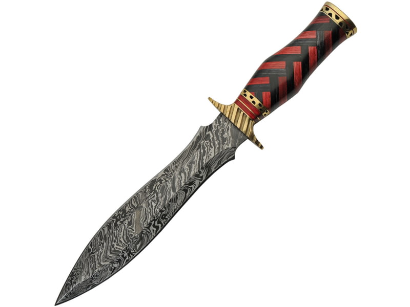 Damascus Braided Wood Dagger Knife 9" Damascus steel dagger blade Black and red wood handle DM-1272