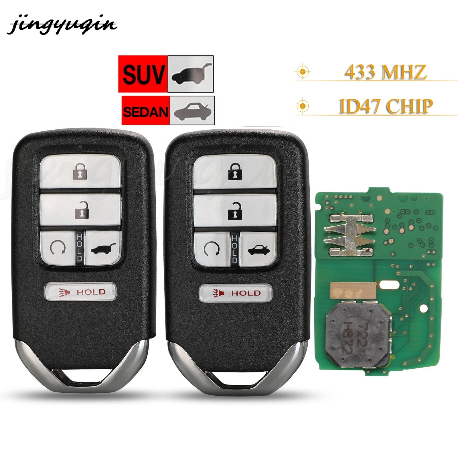 jingyuqin 5 Buttons Smart Remote Car Key Fob 433Mhz ID47 Chip For Honda Civic CR-V Pilot 2016 2017 2018