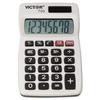 Victor VCT700 8-digit handheld calculator has a large LCD display so it`s easy to read. Dual powered calculator works with or without batteries. Non-slip rubber keys help prevent input errors. White calculator base contrasts with black keys and bottom...