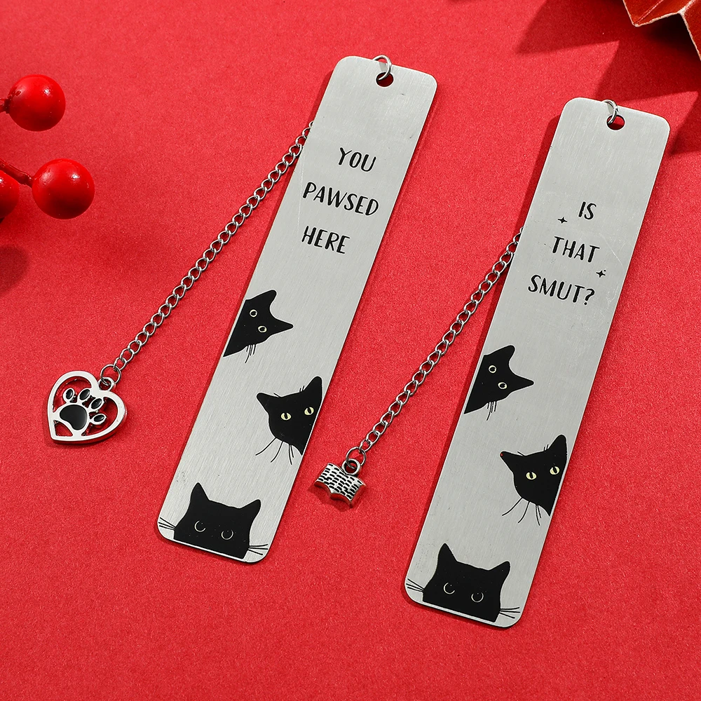1pcs Cute Pet Cat Stainless Steel Bookmarks, Metal Bookmarks for Book Lovers, Book Cat Paw Chain Reading Marker Stationery, Gift