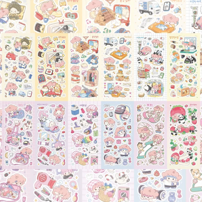 Korea Waterproof Cute Cartoon Girl Stickers Hand Account Diary Planner Notebook Scrapbook Stationery DIY Decorative Stickers