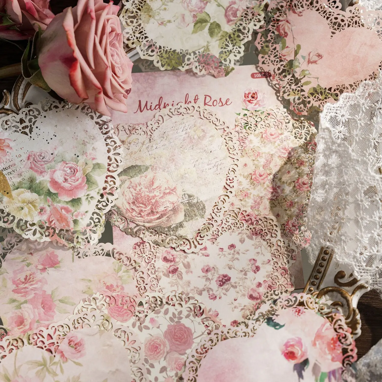 10 Sheets Vintage gradation Hollow lace material paper Decorative Hand Account Diary Scrapbooking accessories