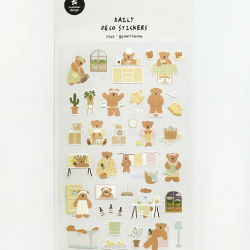 Korean Import Brand Suatelier Kawaii Bear Daily Life Paper Stickers Scrapbooking Diy Journal Stationery Sticker Deco Aesthetic