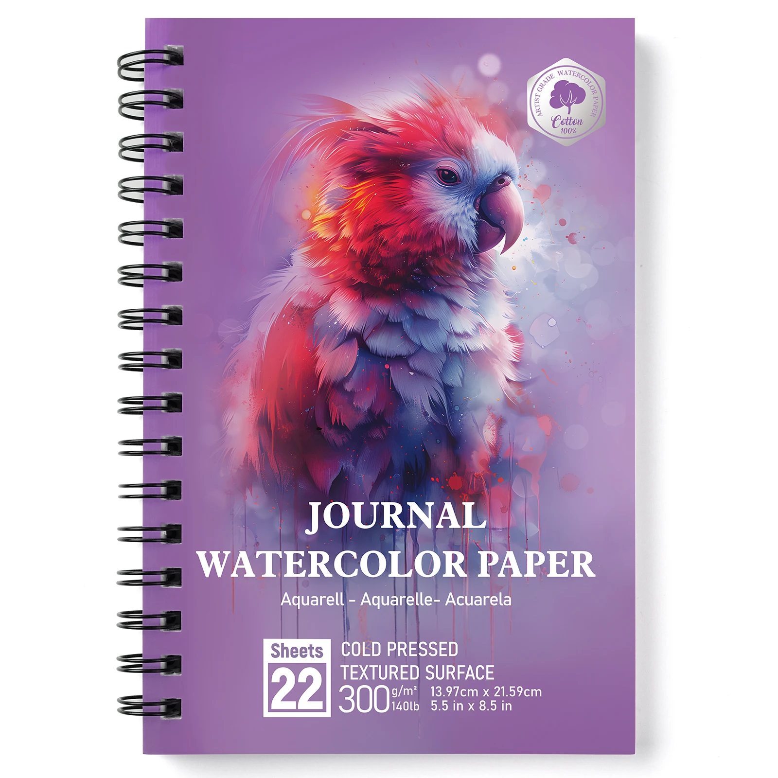 100% Cotton Watercolor Travel Journal - 22 Sheets 5.5x8.5-inch Cold Pressed Watercolor Paper - 140LB/300GSM Watercolor Journal f
