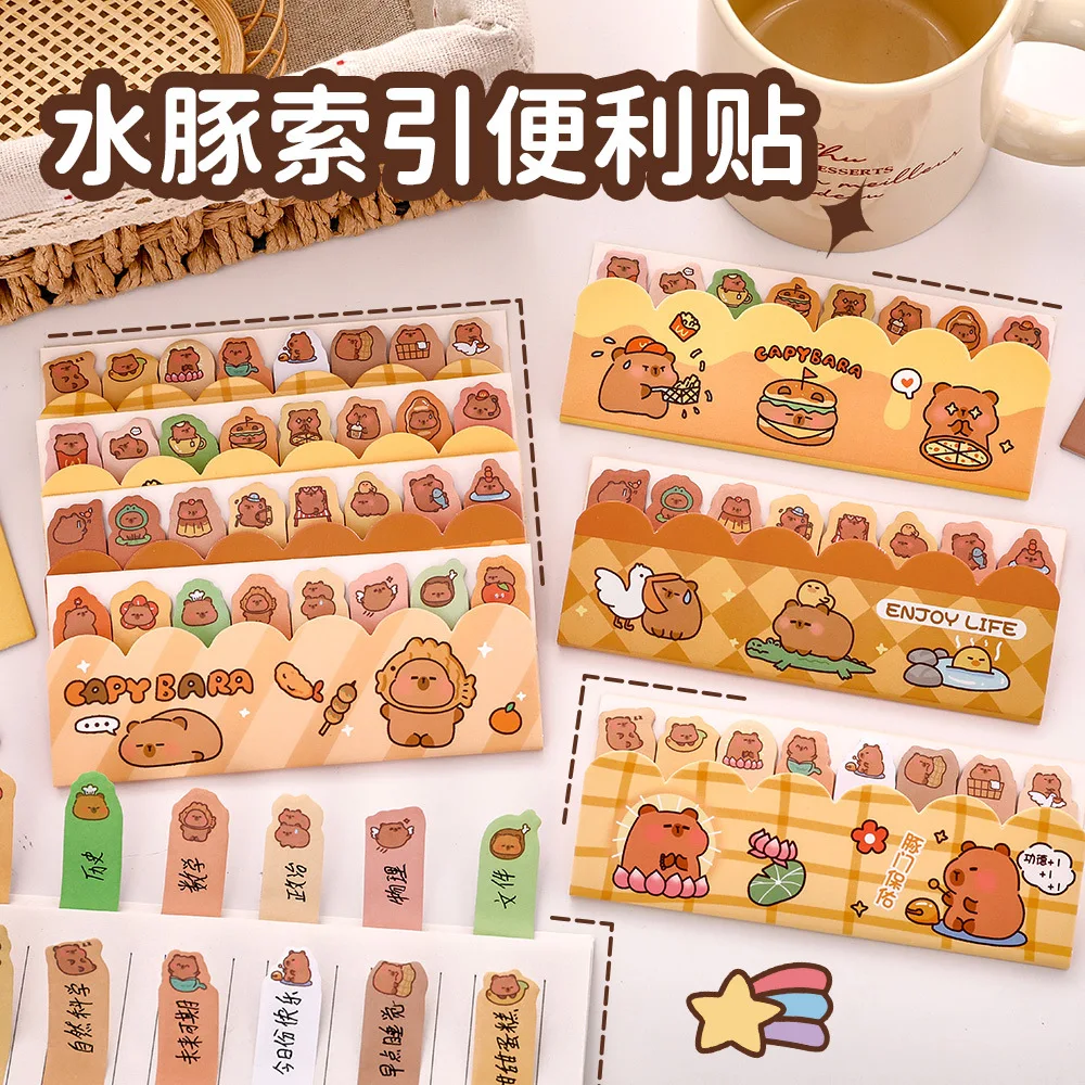 Cartoon Capybara Index Sticker Student Cute Tag Notes N Times Post Kapibara Stationery Reward Note Note Book Notepad