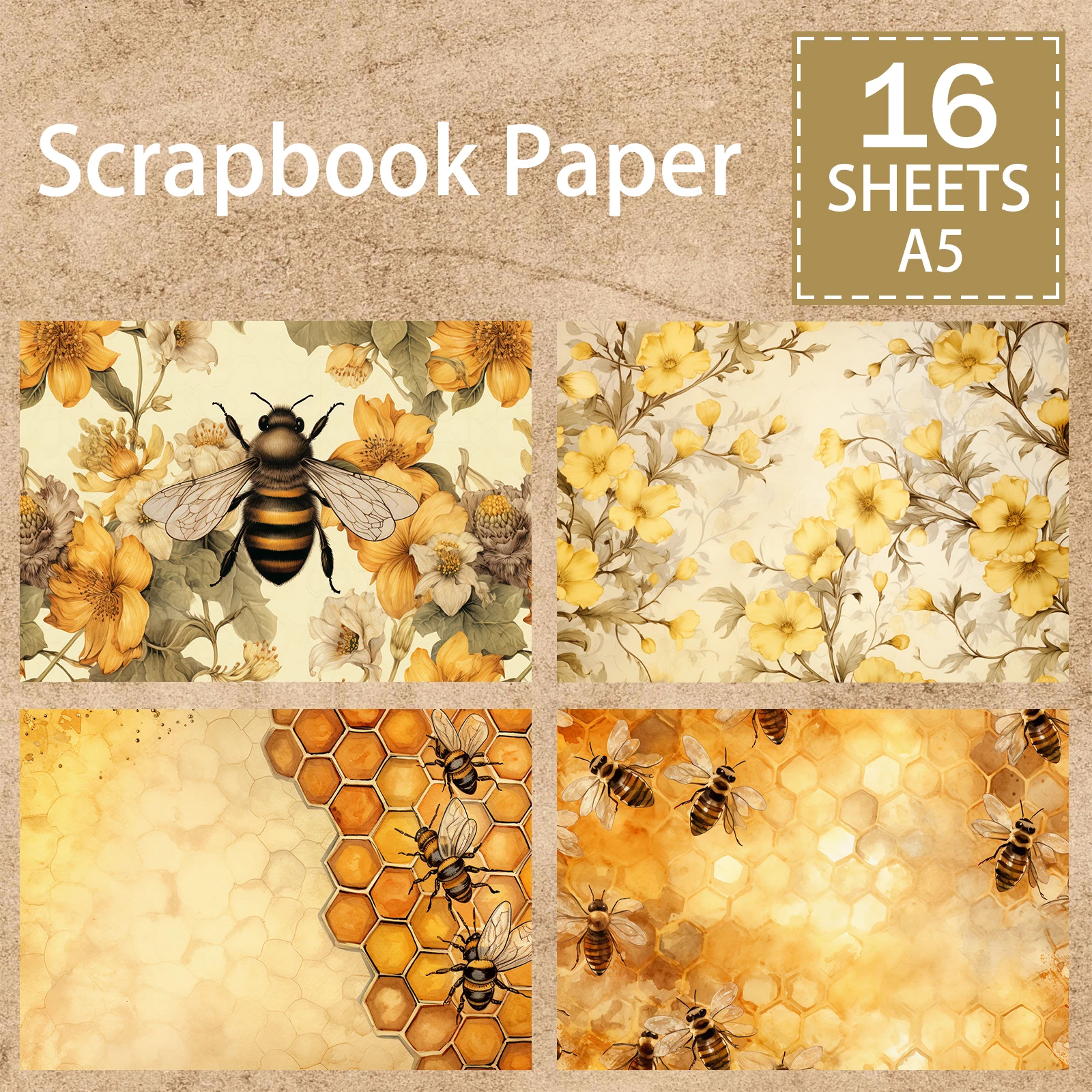16 Sheets A5 Size Animal Insect Bee Hexagon Honeycomb Honey Background Vintage Grunge Journal Planning Scrapbooking