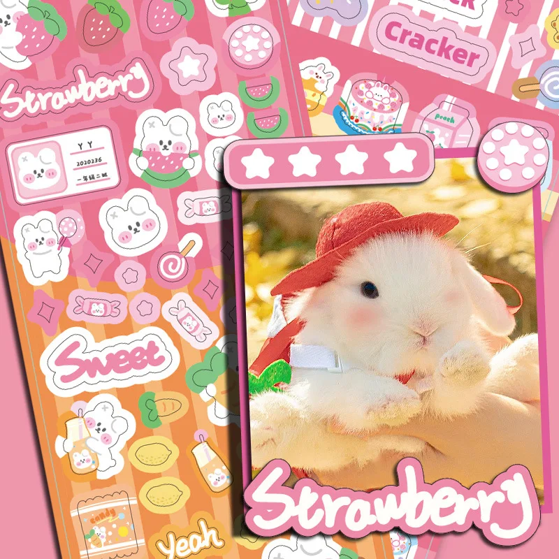 12 Sheets Shiny Laser Cute Cartoon Cat Fruit Cake Stickers for DIY Collage Frame Scrapbook Journal Supplies