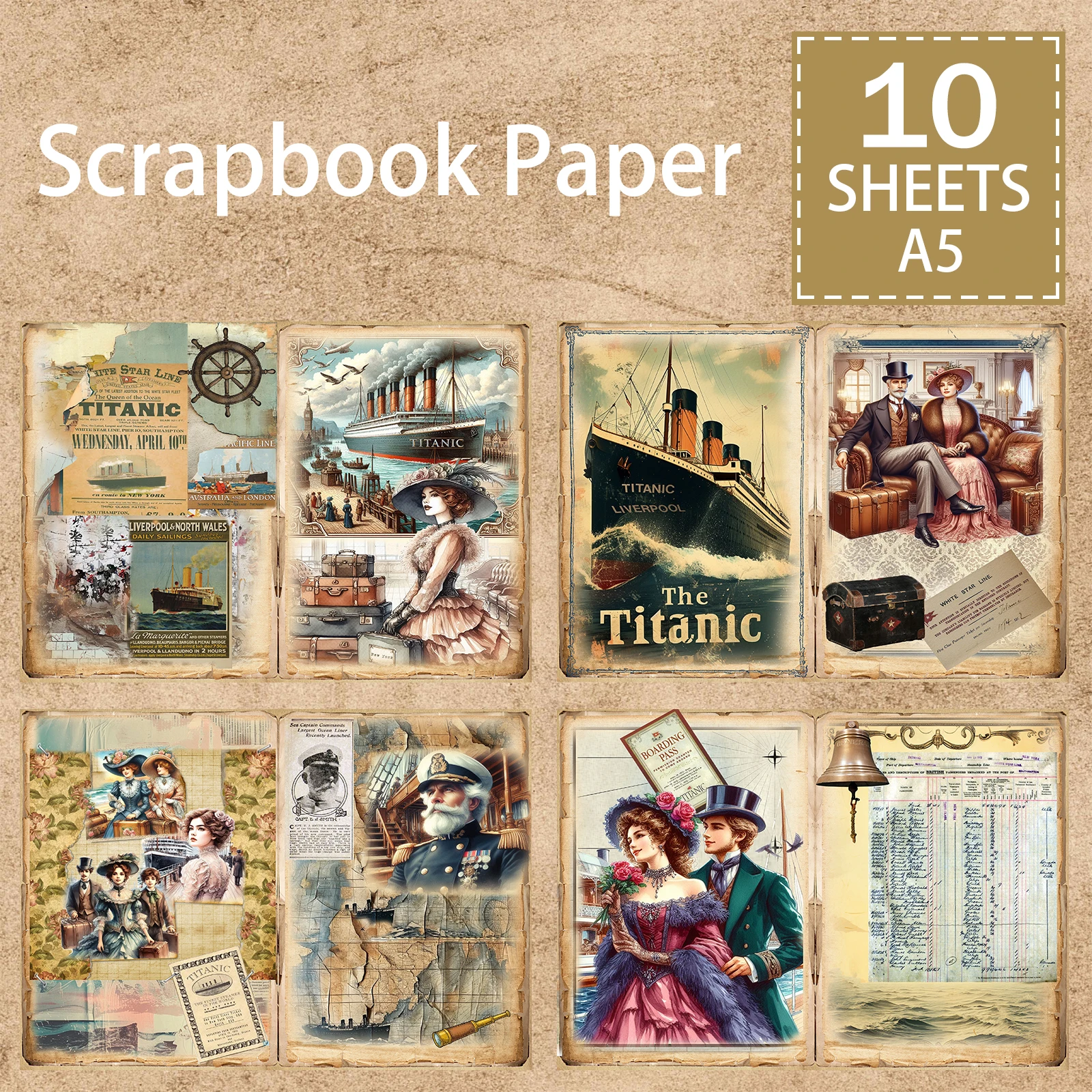 10 Sheets A5 Size Titanic Couple Caption Collage Background Vintage Grunge Journal Planning Scrapbooking