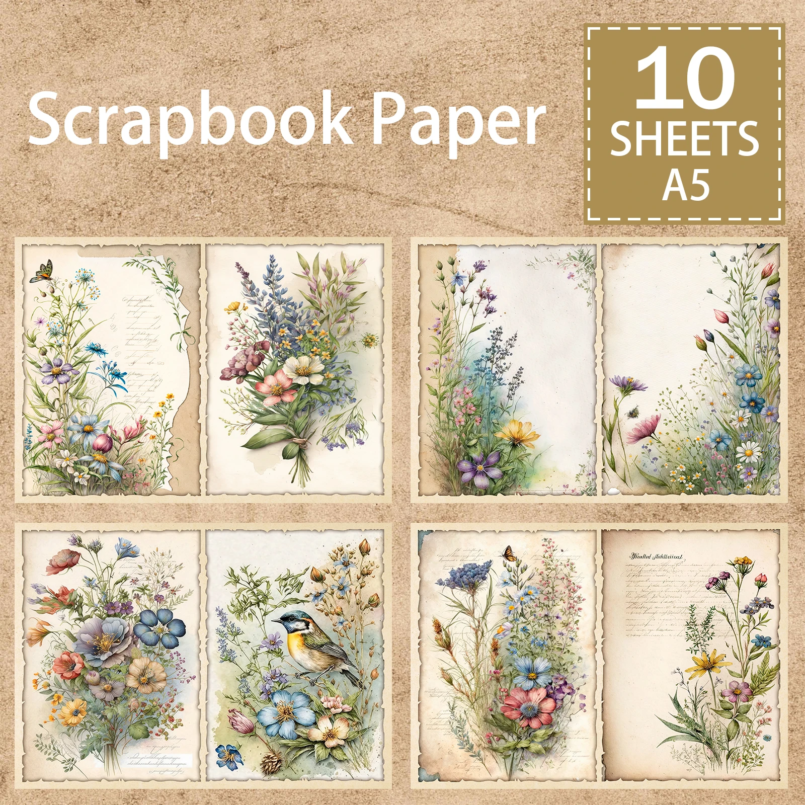 10 Sheets A5 Size Plant And Flower Insert Collage Background Vintage Grunge Journal Planning Scrapbooking